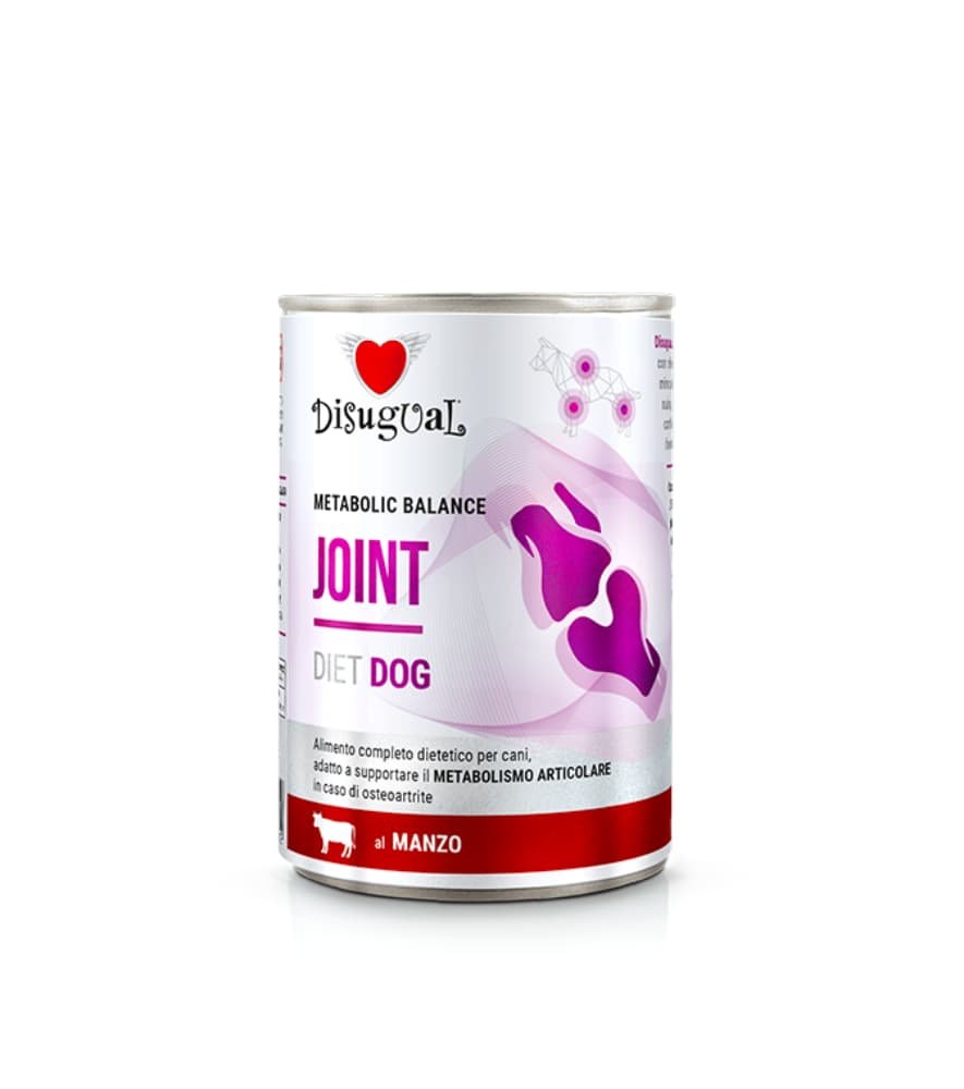 O Disugual Metabolic Balance DOG Joint Paté 400g é um alimento húmido dietético completo para cães, indicado para o suporte do metabolismo articular em caso de osteoartrite, devendo ser utilizado sob orientação médico-veterinária.