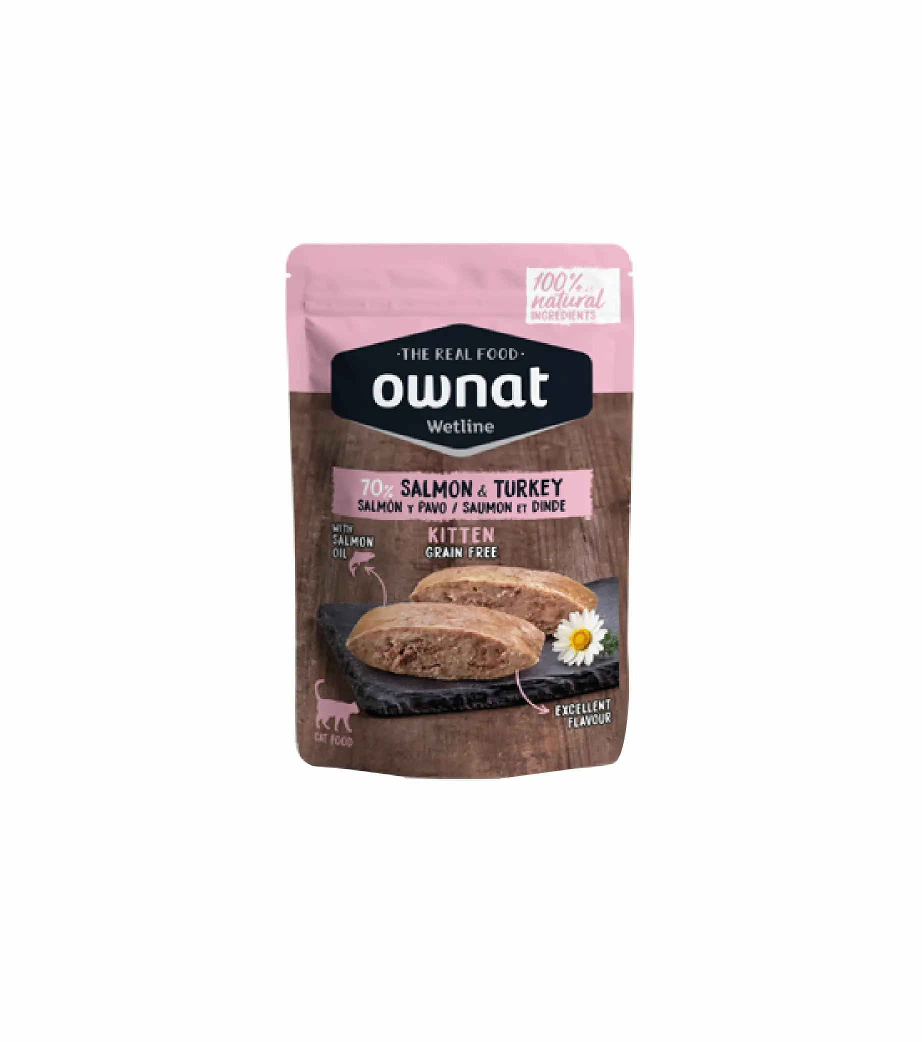 Por Que Escolher o Ownat Wetline Kitten Salmon & Turkey?