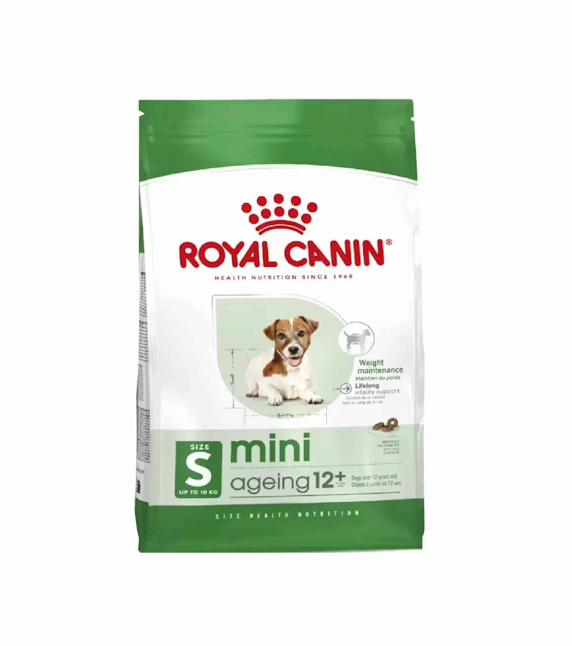 Royal Canin Mini Ageing 12+, ração seca para cães séniores de raças pequenas. Ideal para manter peso, ossos fortes e vitalidade ao longo da vida.